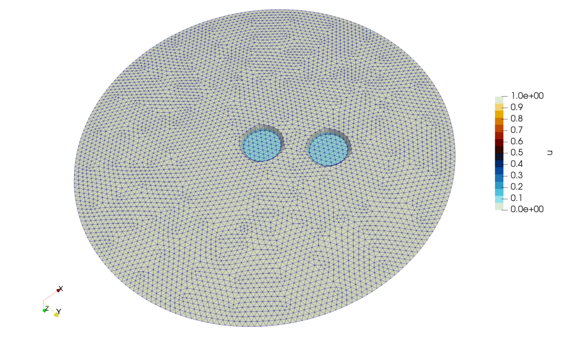 - Implementation of the problem is for PDE in 2D, however, with minimal effort changing the type of element, it can be extended to 3D. Moreover is independent on time integration method, exploiting how PETSc time solver is implemented. width=800p
